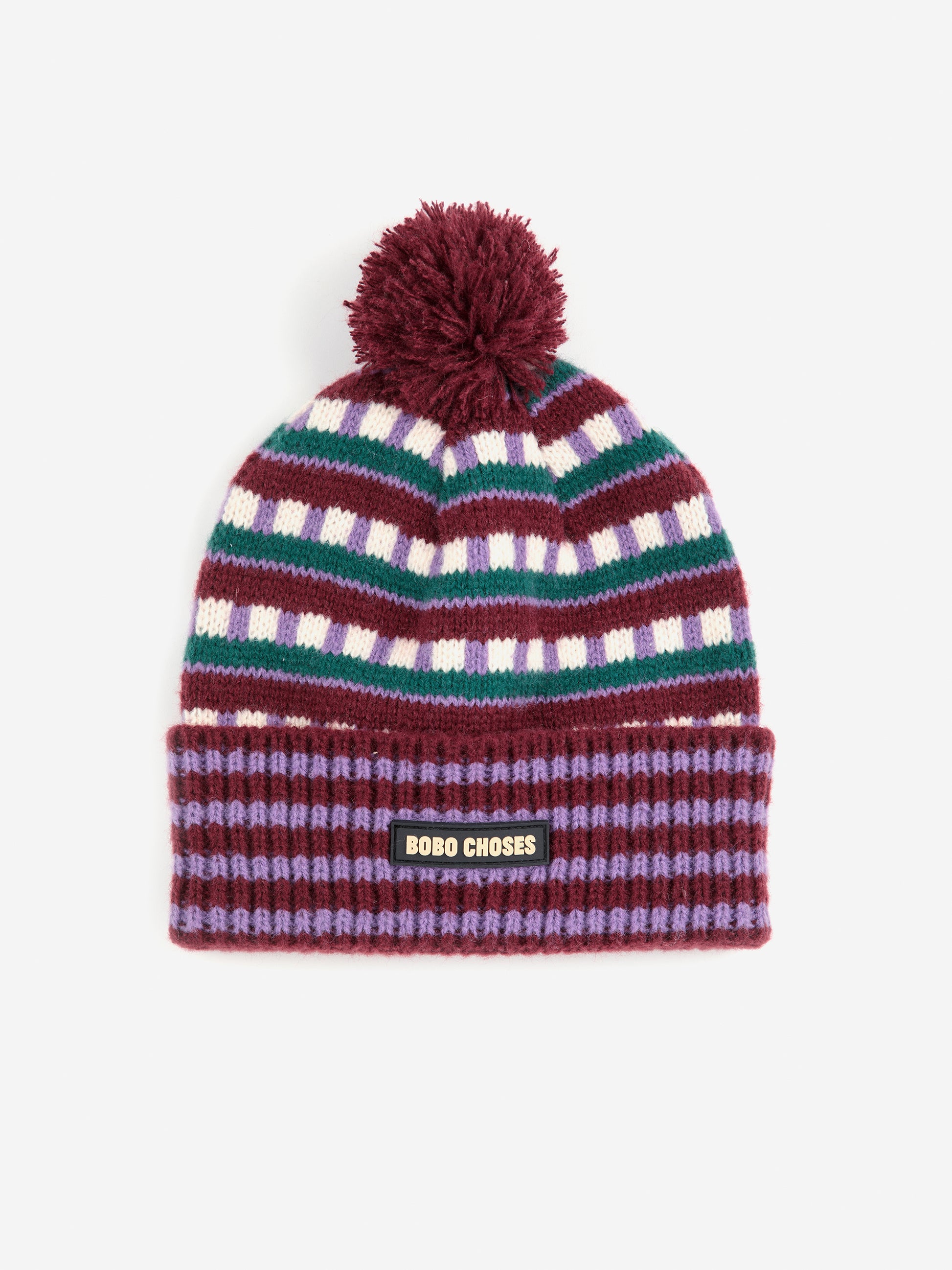 結合永續材質又柔軟保暖的紫色提花毛帽,為秋冬穿搭增添俏皮細節。