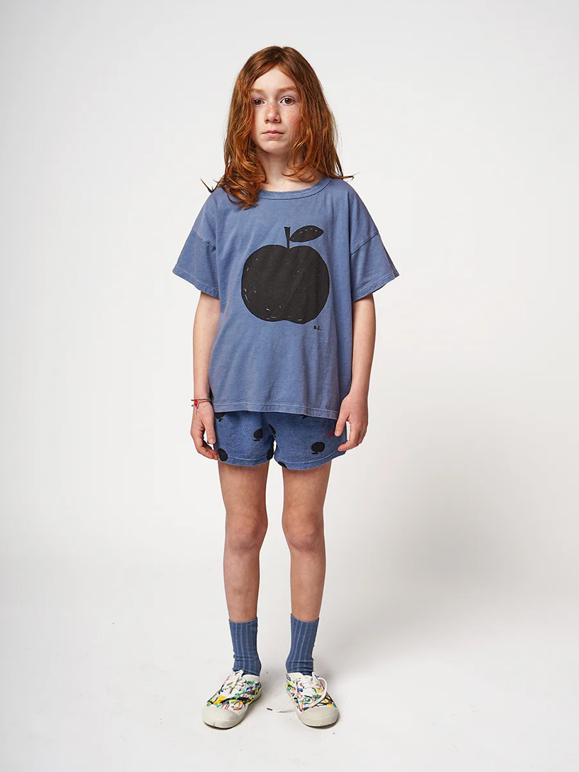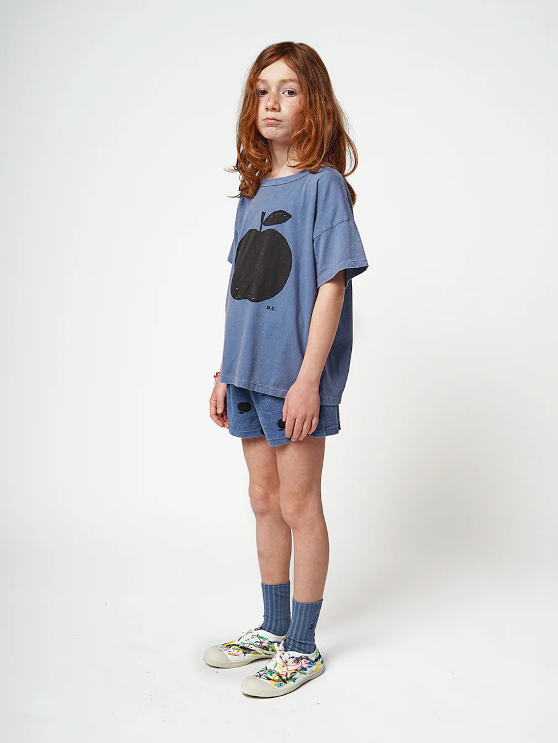 帶著小小探險家走進一個充滿想像力的趣味世界吧!這款藍色「Poma」兒童T恤,以標誌性的午夜藍蘋果圖樣點綴,輕柔貼合孩子們自然的動作,給予他們充足的活動空間,讓穿著無負擔。這件衣服能夠陪伴他們每一次的冒險旅程,耐穿耐動,跟得上每一個步伐。