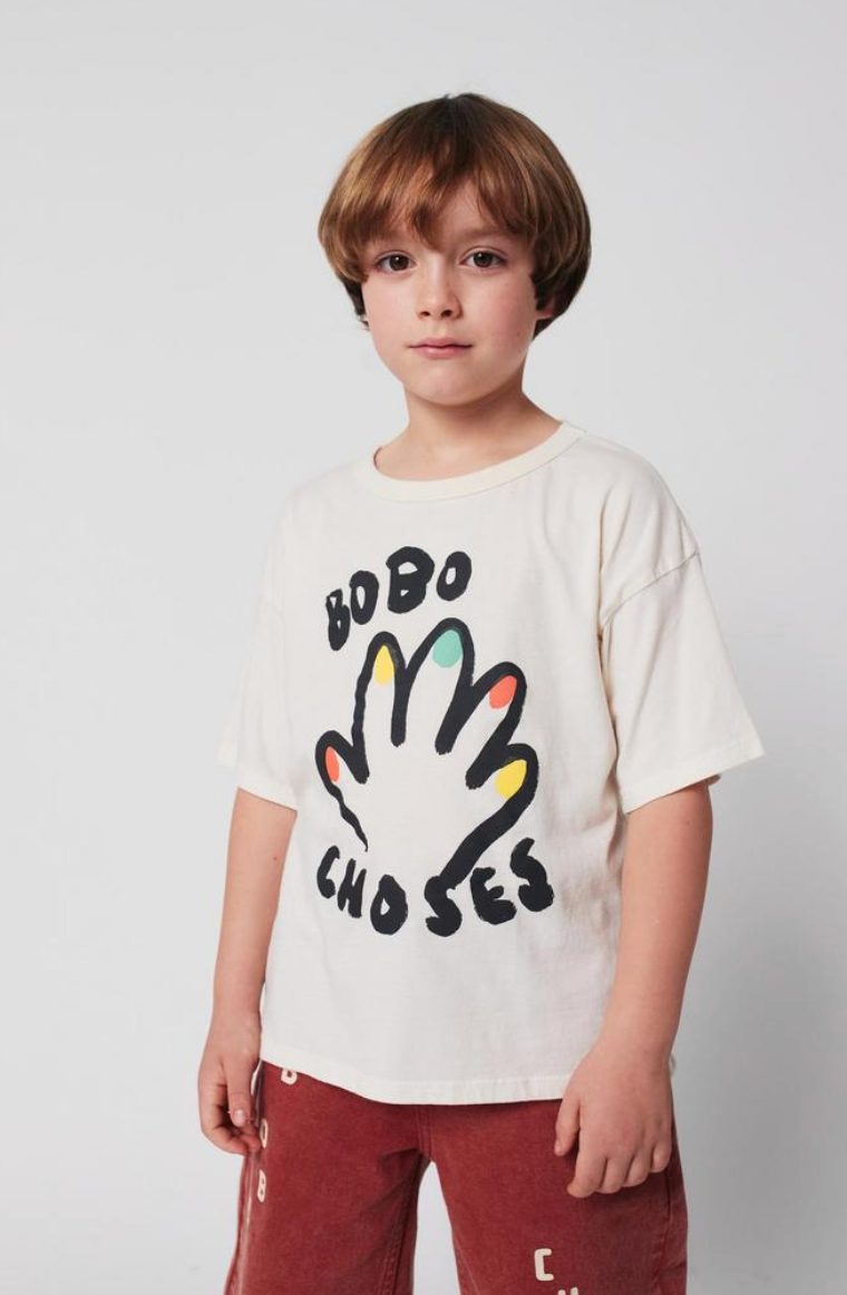 米白色T恤,短袖、寬鬆版型與圓領設計,簡約百搭,滿有活力!