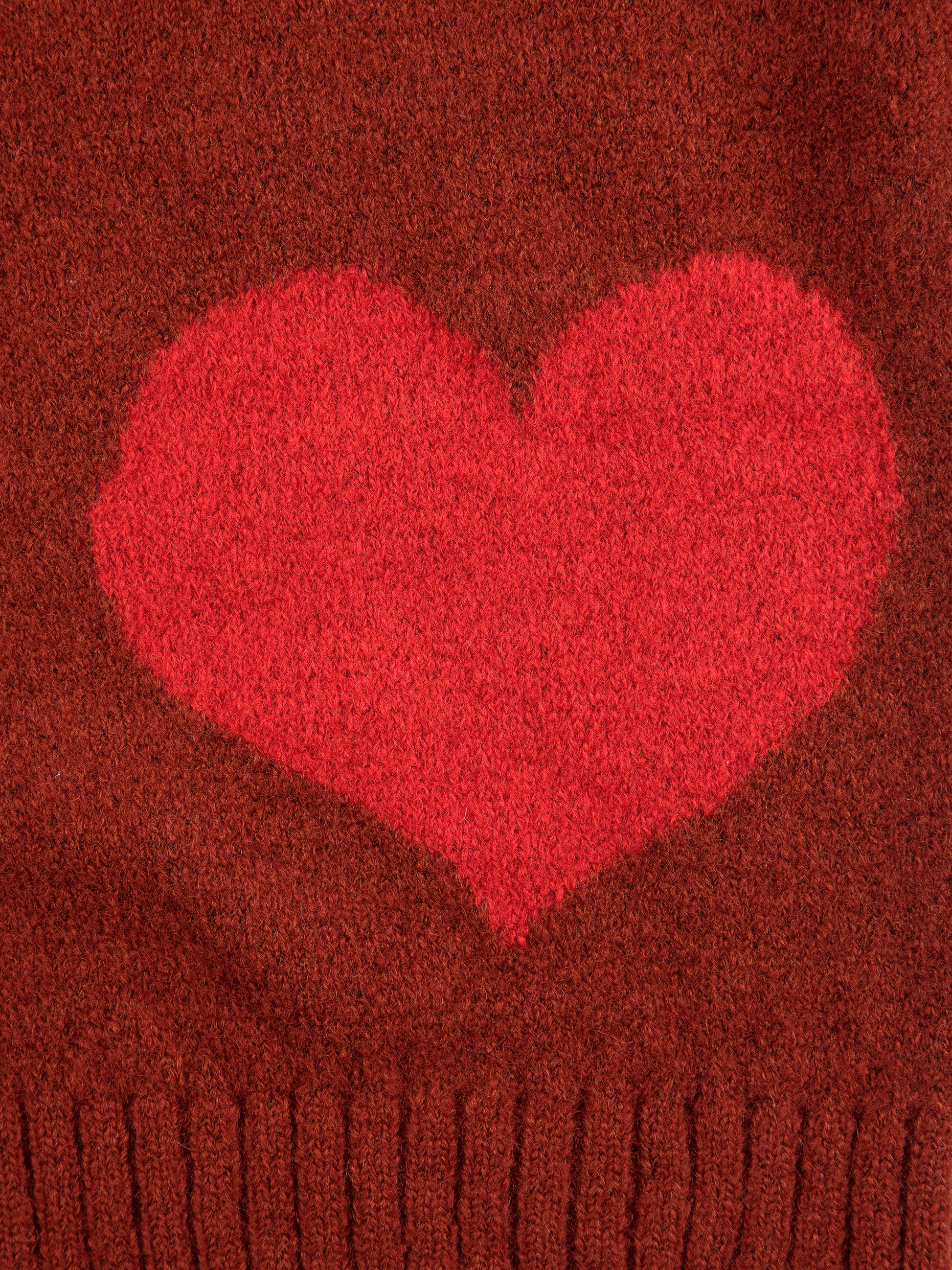 勃根地酒紅色高領針織衫,以 Bobo Joker 元素注入童趣靈感。寬鬆版型搭配羅紋袖口與下擺,穿著舒適自在。高領設計結合嵌花提花細節,既保暖又具玩味視覺感,為日常穿搭增添一抹活潑趣味。