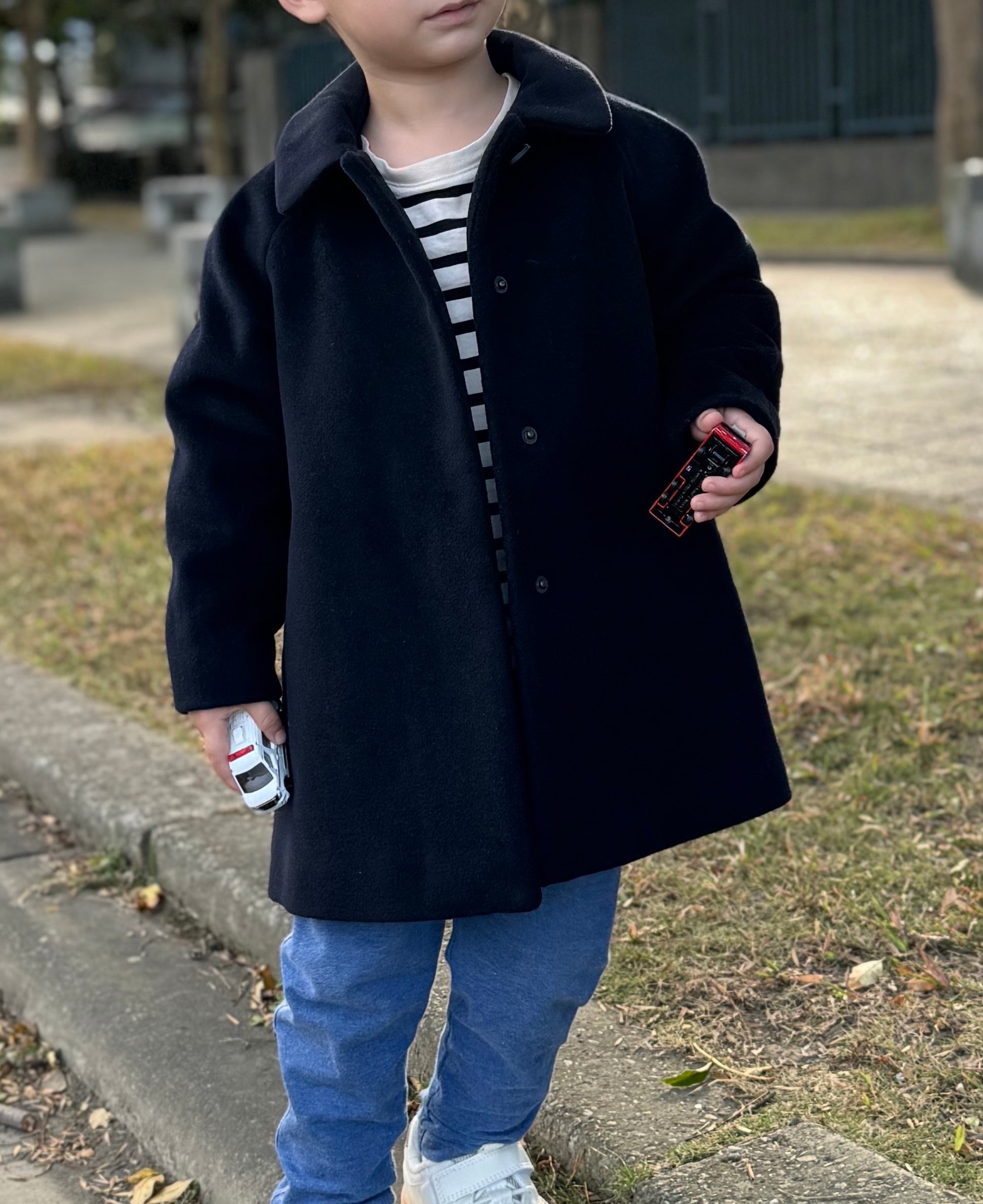 每件由法國北部「創立於1954年」的製衣工坊監製設計,烏克蘭製造,堅持細節工藝與剪裁精準。 經典又童趣的鐘型大衣輪廓與童裝活潑比例結合,讓孩子穿得自在、上身優雅且有型。