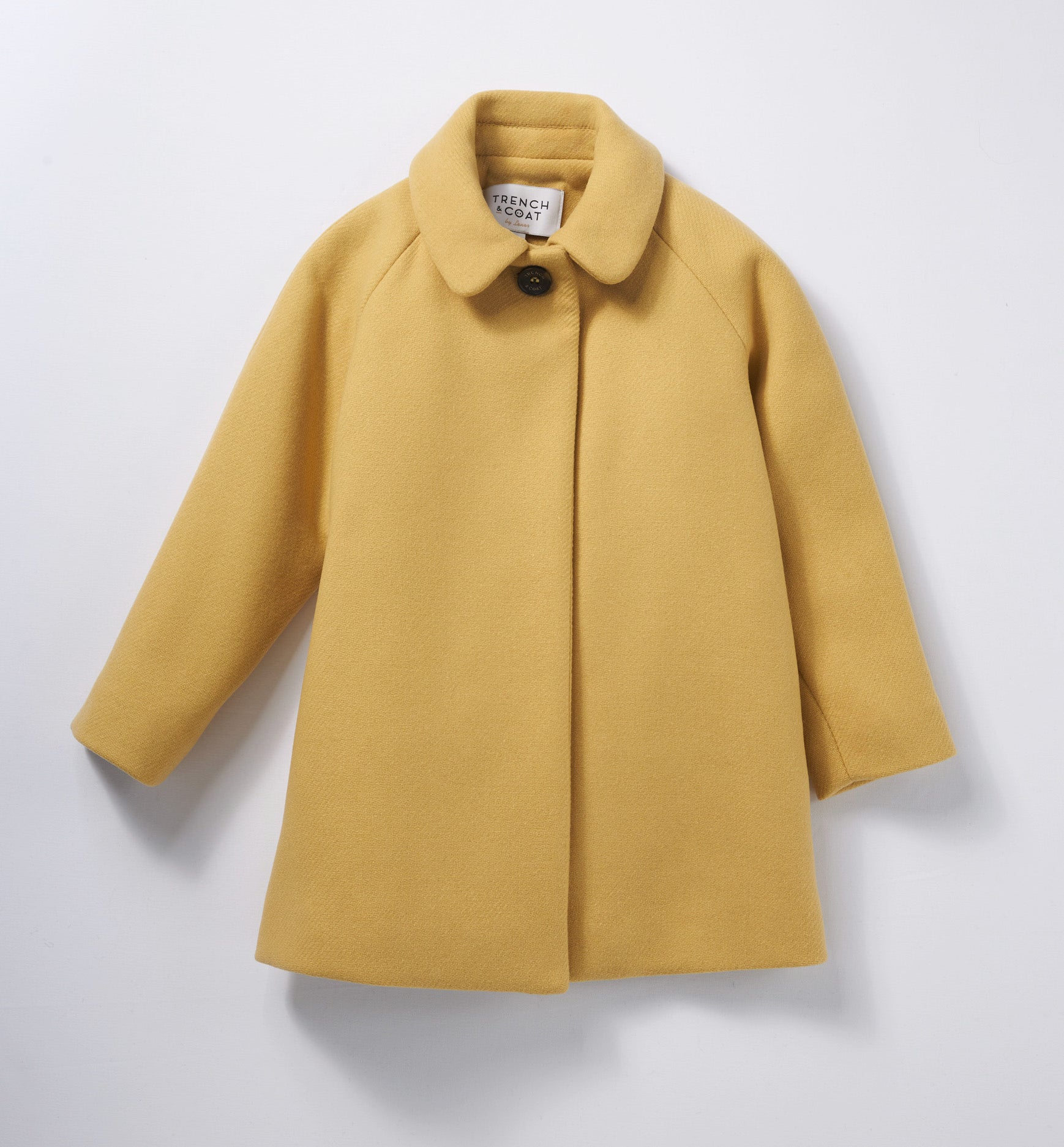 Marelle蛋黃色鐘型圓領羊毛大衣