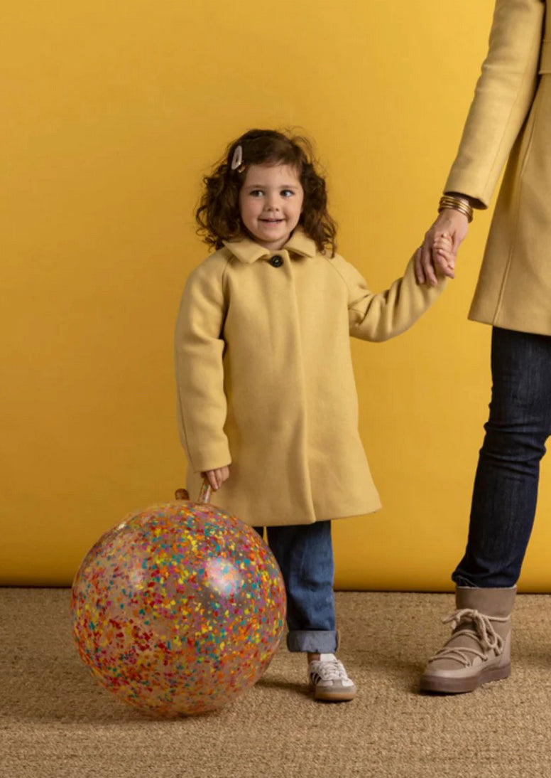 每件由法國北部「創立於1954年」的製衣工坊監製設計,烏克蘭製造,堅持細節工藝與剪裁精準。 經典又童趣的鐘型大衣輪廓與童裝活潑比例結合,讓孩子穿得自在、上身優雅且有型。