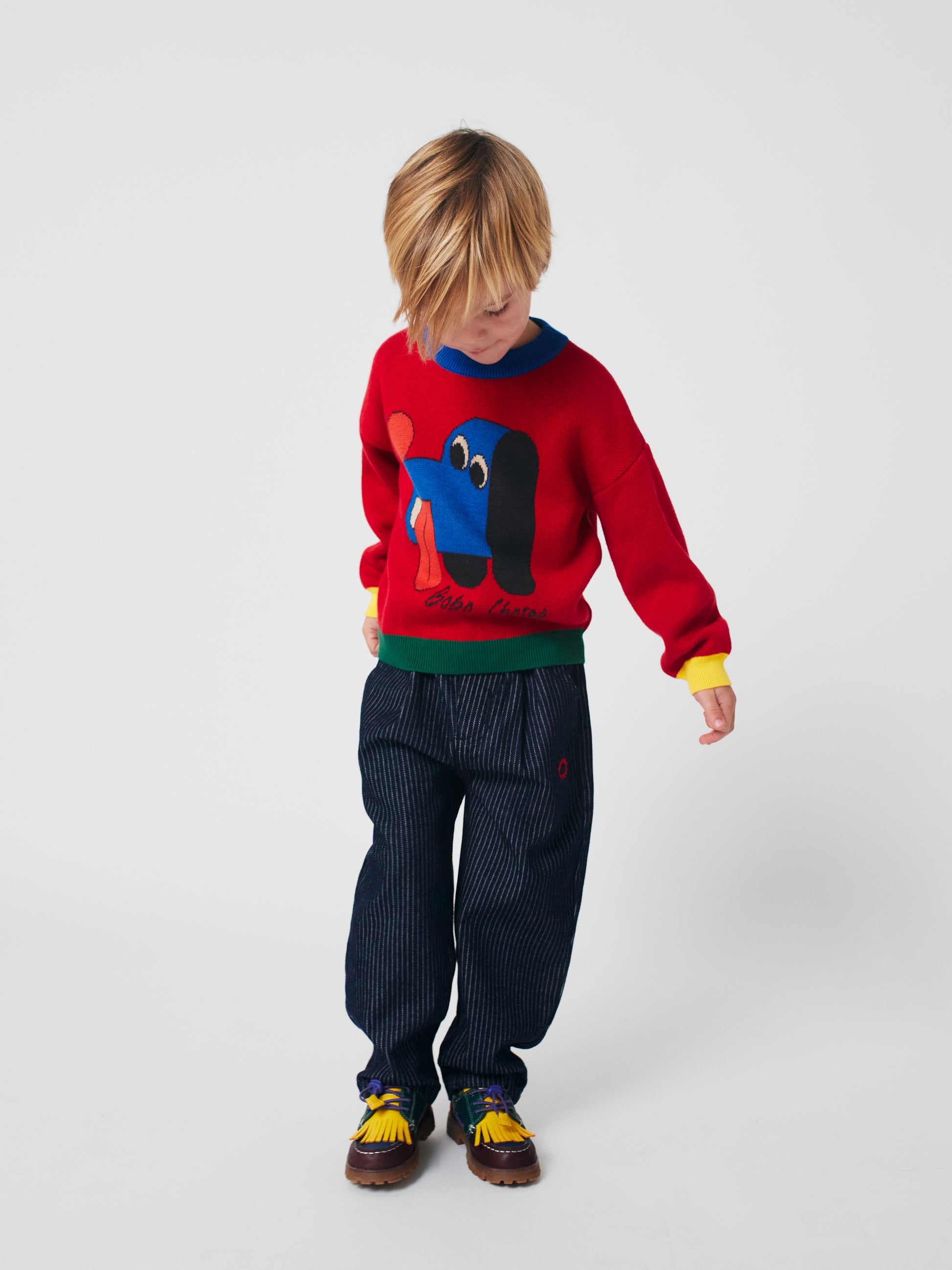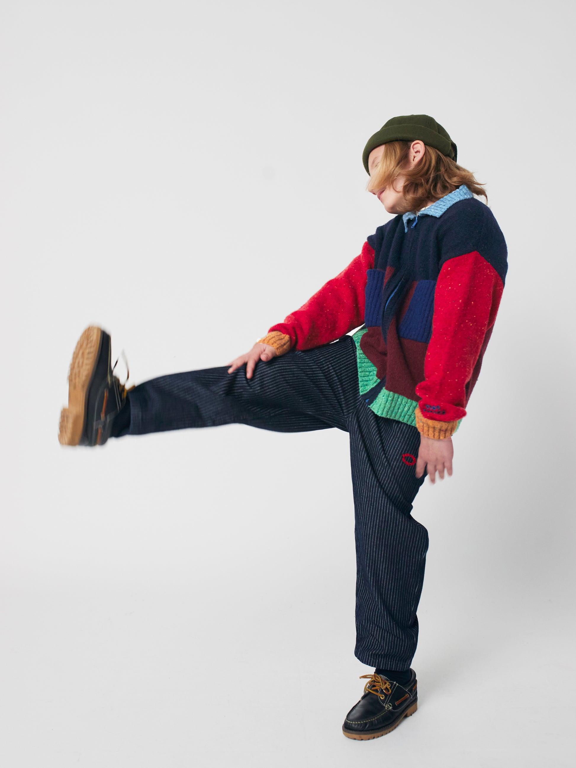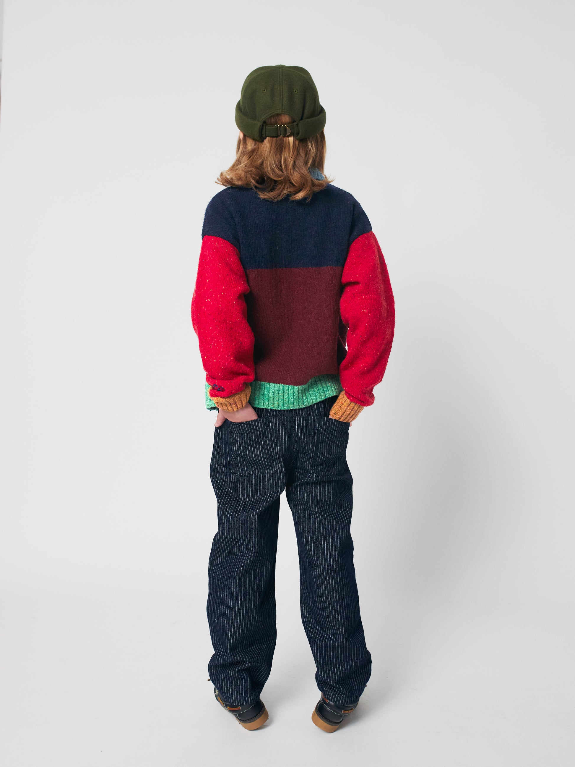 耐力十足的藍白條紋丹寧,中腰設計,可正式可休閒。